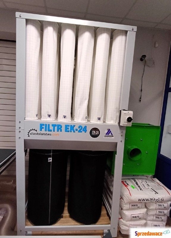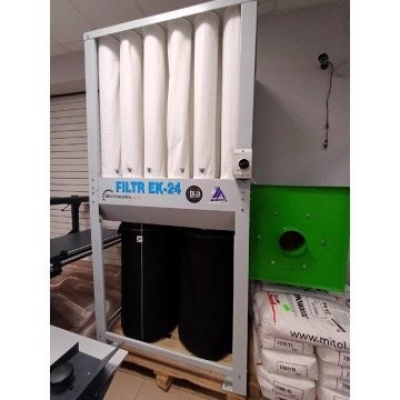 Filtr EK-24 to uniwersalne urządzenie do odciągu i filtracji trocin, pyłów i zanieczyszczeń pochodzących z obróbki drewna, materiałów drewnopodobnych oraz innych materiałów produkcyjnych. Doskonale nadaje się do współpracy z okleiniarkami, ploterami frezującymi, oraz mini centrami obróbczymi.