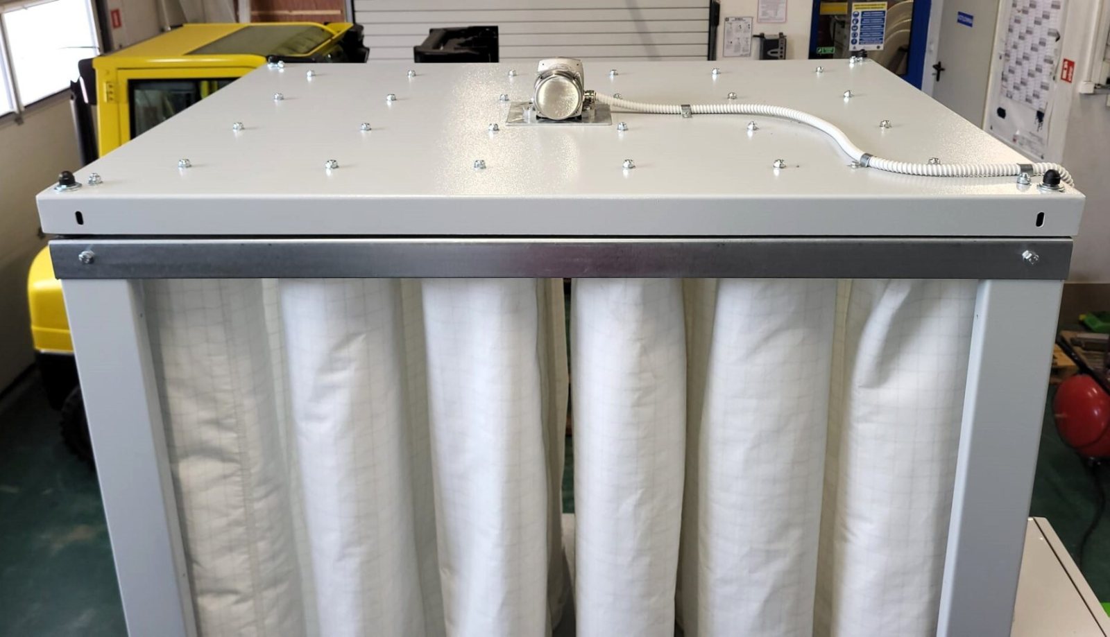 EK-24 wyposażony jest w elektrowibrator o mocy 0,04 kW w systemie ATEX służący do oczyszczania worków filtracyjnych wykonanych z materiału antystatycznego i wodoodpornego o gramaturze 350g/m² i przepuszczalności powietrza 240l/dm²/min.