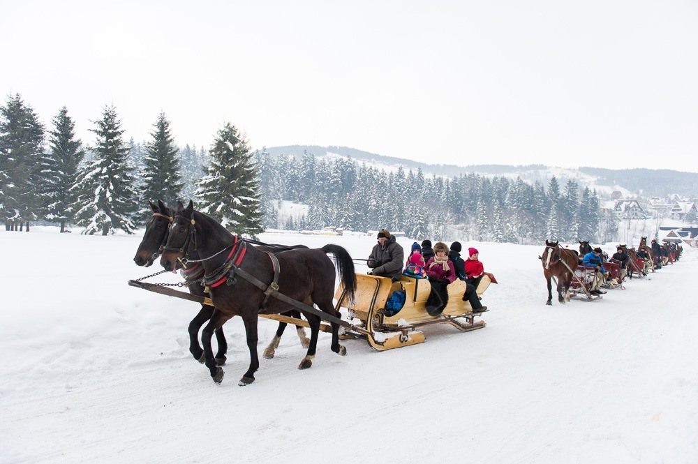 Drugą opcją jest kulig na Krzeptówkach. Wyjątkowy zakopiański klimat starych Krzeptówek oraz droga Pod Reglami zimową porą zachwycą Państwa także.