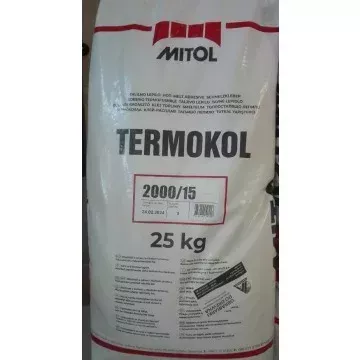 Klej Termokol 2000/15 . Jest klejem topliwym do oklejarek prostoliniowych. Stosowany jest do oklejania obrzeży fornirowanych, melaminowych, poliestrowych, ABS i PCV.